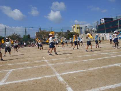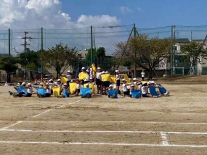 黄色と青色のループスカーフで、リズムにのって踊りました。