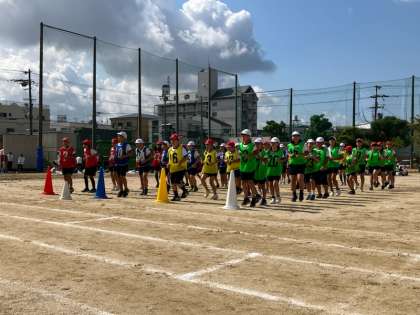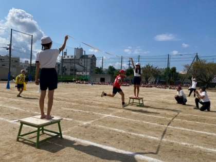 「バトンをつなげ!」5年生の団体競技(リレー)です。