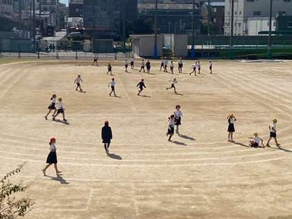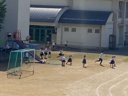 運動場では、子どもたちが元気いっぱい遊んでいました。