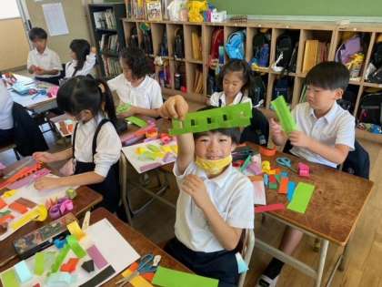 図画工作科の学習で「紙をへんしんさせよう」です。