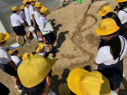 流れる水には、土地を侵食したり、土を運搬したり堆積させたりする働きがあることを確かめました。