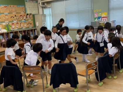 1組の子どもたちが、「フルーツバスケット」をして 楽しい時間を過ごしていました。