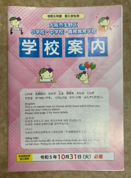 時間につきましては、区役所から各ご家庭に送付されている「学校案内」の冊子をご覧ください。