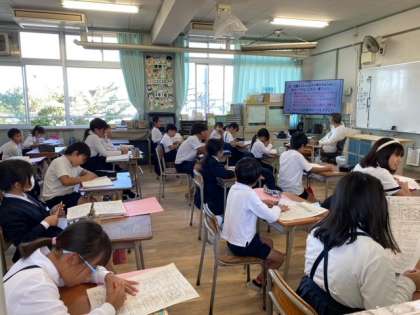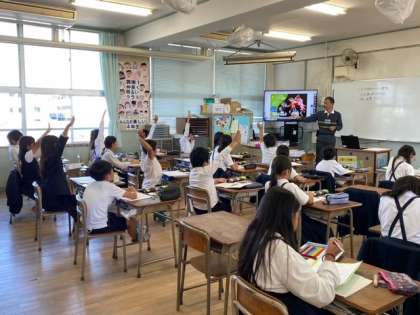 先生の発問に、子どもたちが、元気よく手を挙げています。