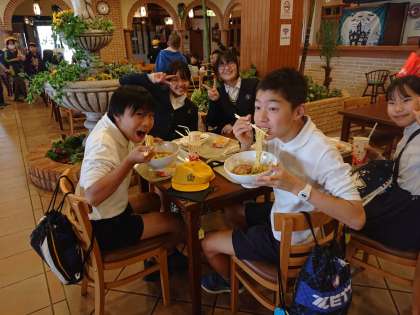 スペイン村では、自分たちで昼食場所とメニューを選んで食事をします。
