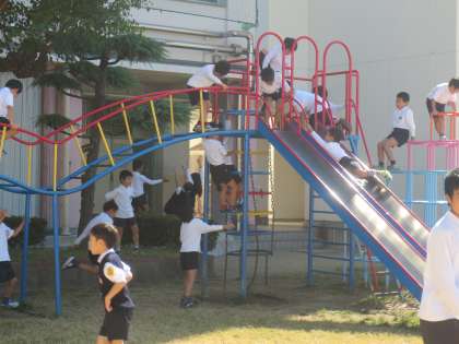 体を動かすにはとてもよい季節です。休み時間に元気よく遊ぶ子どもたちです。様子をご覧ください。