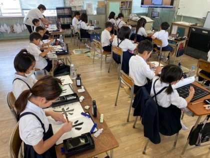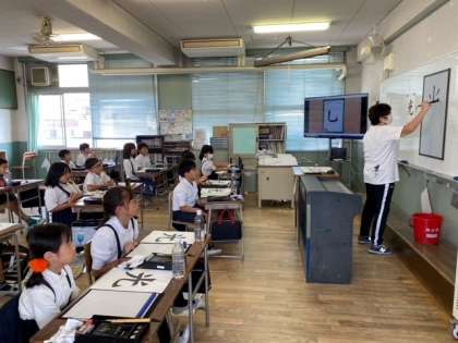 「トン・スー」の筆遣いを意識して子どもたちが、半紙上に挑戦しました。