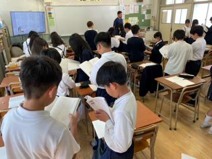 子どもたちが、「大造じいさんとガン」の物語の「一」の場面を、中心人物の心情を想像しながら音読しています。