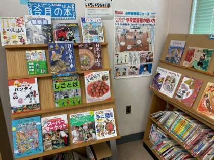 館内の「今月の本」コーナーにはおすすめの本が」並べられていました。
