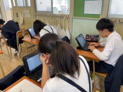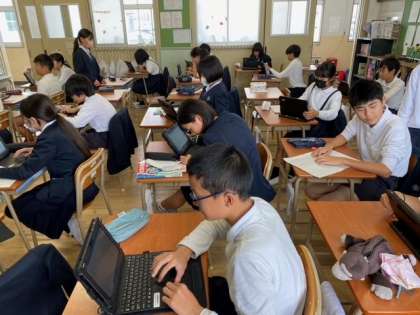 子どもたちが、下書きをもとにタブレット端末に打ち込んでいました。
