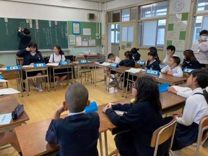 代表委員会では、「つな引き大会の計画を立てよう」の議題で、話し合い活動を展開していました。