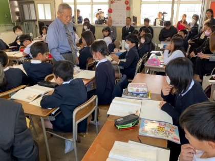 国語科教育の第一人者でもある野口先生に、5年生1組で、国語科の師範授業をしていただきました。