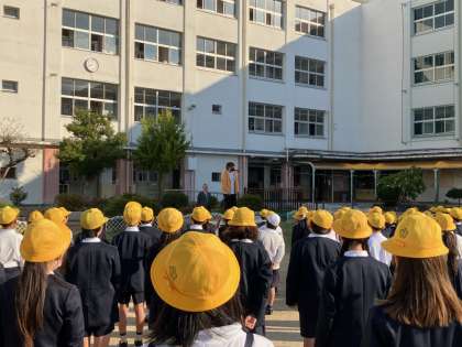 看護当番の先生から、みんなの力で学校を美しくするためにできること、また、通学(登下校)で気をつけることについて話がありました。