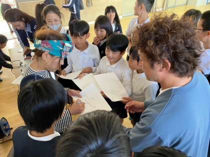 子どもたちの中には、質問をしたり、サインをもらっている子もいました。