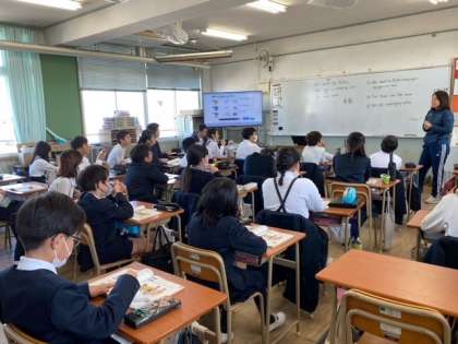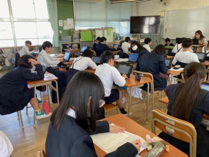 1組の英語科は、行事で行った場所や見たものについての発表(英語)を聞いて、質問に答えていました。