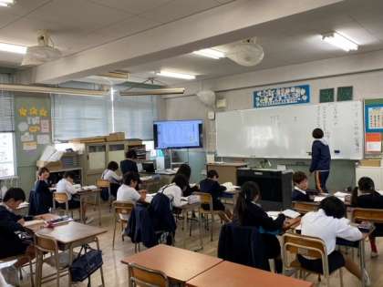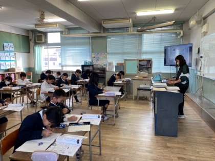 1組の国語科では、「○○さんが花びんを(買った)。その時○○さんは(嬉しかった)。」