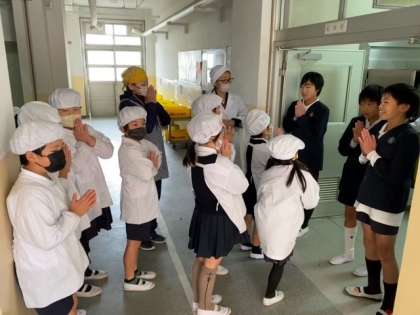 みんなで手を合わせて「いただきます」のあいさつをしていました。