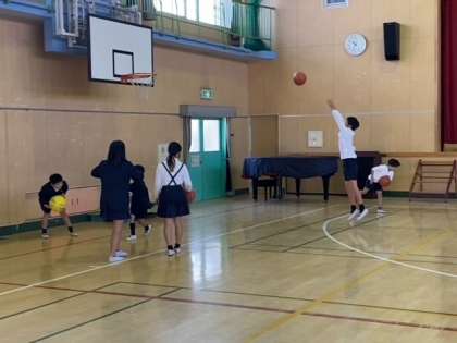 6年生の子どもたちは、気持ちよさそうにバスケットボールをしていました。