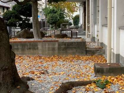 玄関わきには落ち葉が… いよいよ冬ですね。