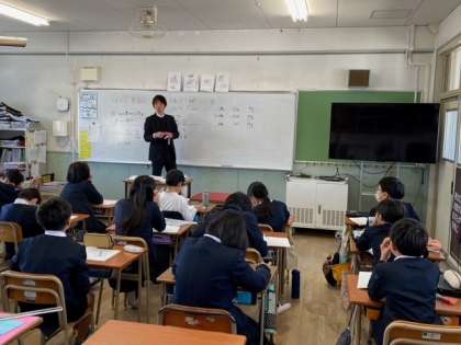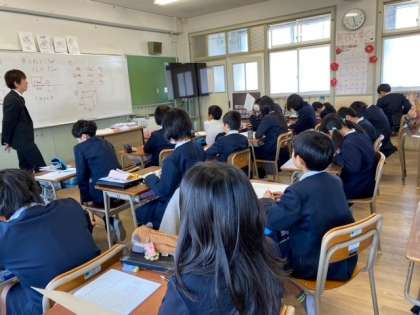 先生が出題する「数と式」や「図形」の10の問題を、子どもたちが考えていました。