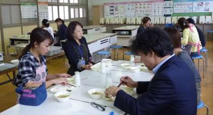 今日は、PTA給食委員会主催の試食会と料理講習会がありました。