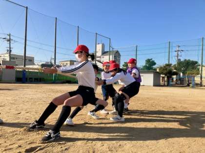 高学年の児童が声を出してチームをまとめています。