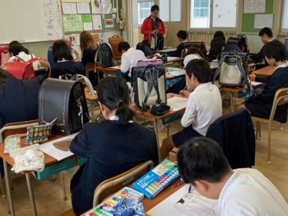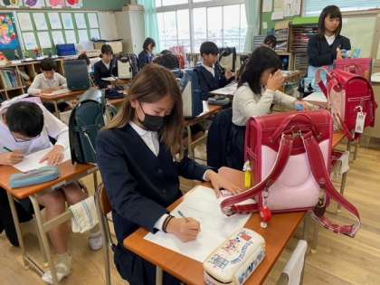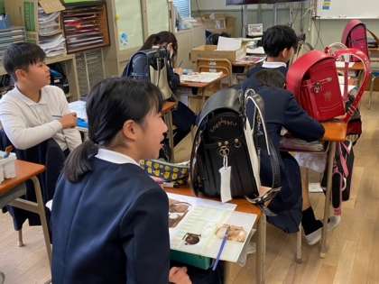 2組の図画工作科の学習で、子どもたちが、ずっとお世話になった「ランドセル」をスケッチしていました。