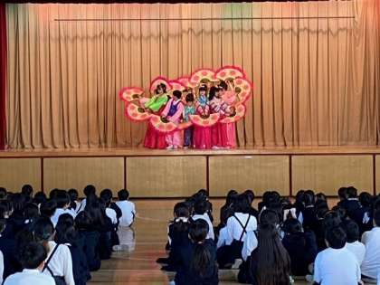 観覧している子どもたちの目が、舞台上の優雅な踊りに釘付けになっていました。