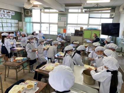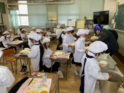 1年生の教室では、子どもたちが手際よく配膳作業をしています。これだけできるようになりました。