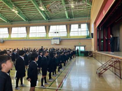 生活指導の先生からは、冬休みの生活の振り返りと、3学期の学校生活について「しっかりと切りかえをしよう」と話がありました。