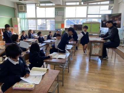 1年生の教室では、今年初めて習う漢字の書き順の練習や、冬休みの絵日記などの提出をしていました。