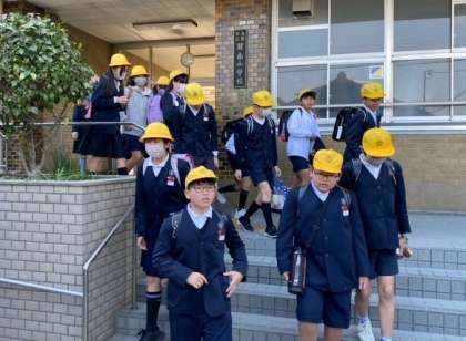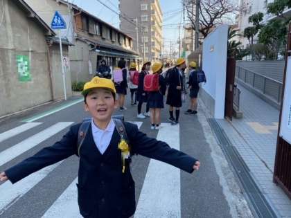 見送りの先生たちや見守りの方々にあいさつをして、子どもたちが、笑顔で帰路につきました。