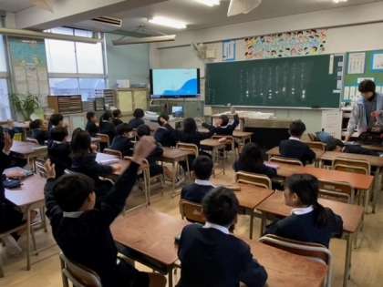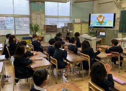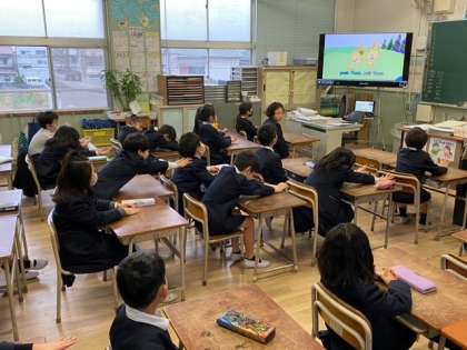 2年生の、朝のイングリッシュタイム(英語の短時間学習)のようすです。