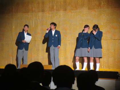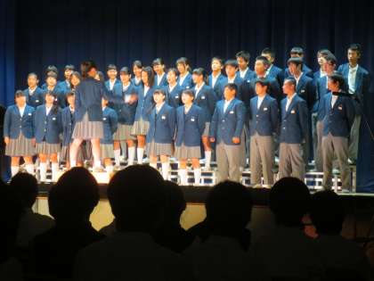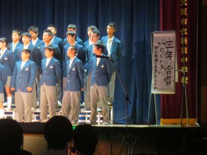 中学3年生の課題曲「にじいろ」「WINDINGROAD」のの合唱発表です。3年生は劇なども発表していました。
