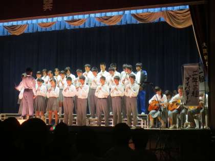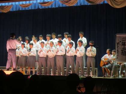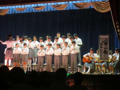 中学2年生の課題曲「カントリーロード」と2組「FRIENDS」1組「心の中にきらめいて」3組「マイバラード」の合唱発表です。