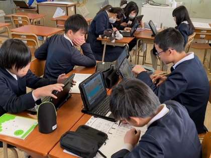 思考ツールで情報を整理し、今後グループごとに発表する予定です。(2組でのようすです)