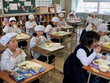 子どもたちが、ちらし寿司や雑煮を美味しそうに食べています。