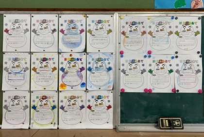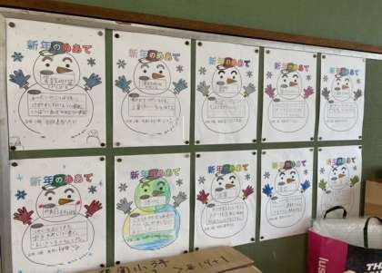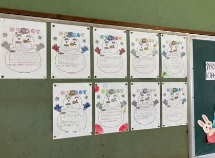 3年生の子どもたちが書いた「新年のめあて」が、教室に貼ってありました。