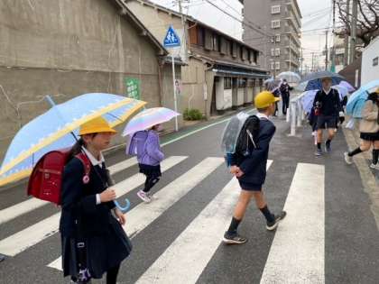 今朝は、小雨が降っています。通行に気をつけましょう。
