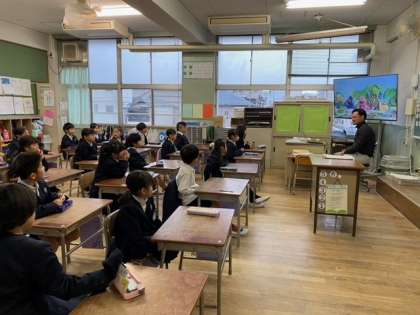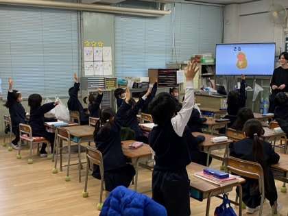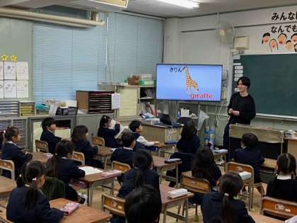 1年生の教室から、子どもたちの元気な英語が聞こえてきました。