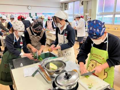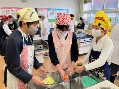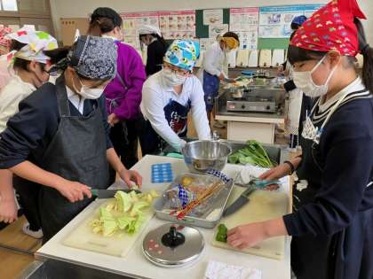 今日は6年生の家庭科の学習で調理実習がありました。