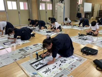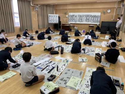 1組の子どもたちが、多目的室で「書き初め」をしました。