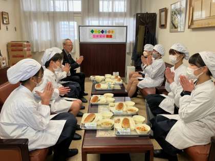 グループごとに、数人の子どもたちが、校長室にきて、校長先生と一緒に給食を食べます。