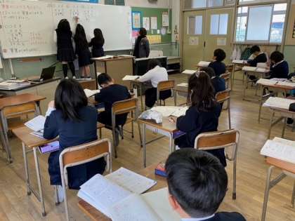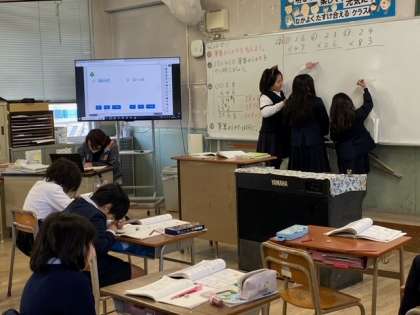 「筆算の仕方を考えよう」のめあてで、子どもたちが 2けた×2けた の計算問題を解いていました。