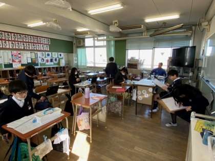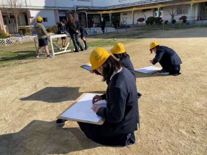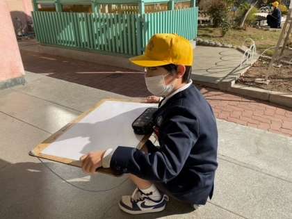 昨日に続いて、「私たちの大切な風景」をキャンバスに描いていました。