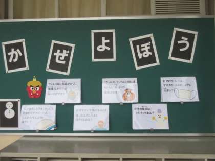 保健室前は、かぜよぼうのクイズです。