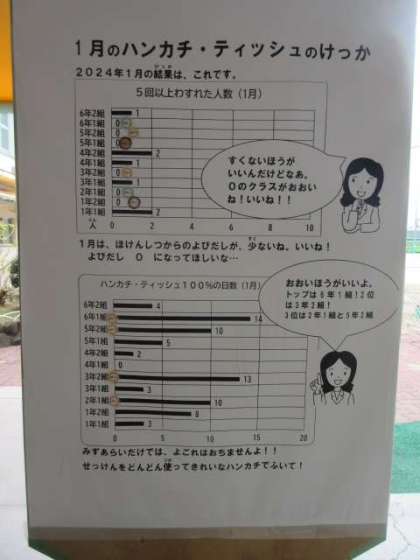 玄関には、1月のハンカチティッシュの結果を掲示