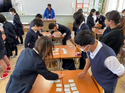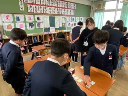 上の句を聞くと同時に、素早く反応している児童もいました。 表情が真剣です。