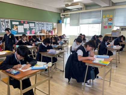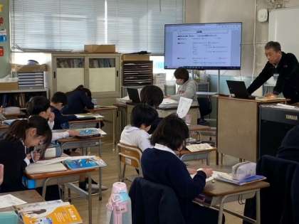 ものから音が出ているとき、もののようすはどうなっているか、トライアングルを例にして考えました。