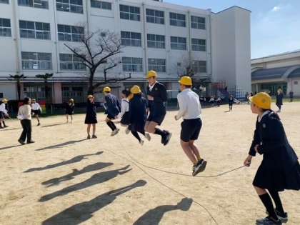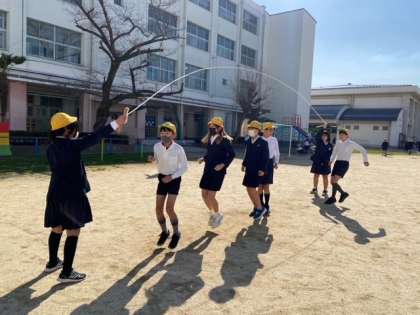 6年生の子どもたちが、交代しながら笑顔で おおなわを楽しんでいました。